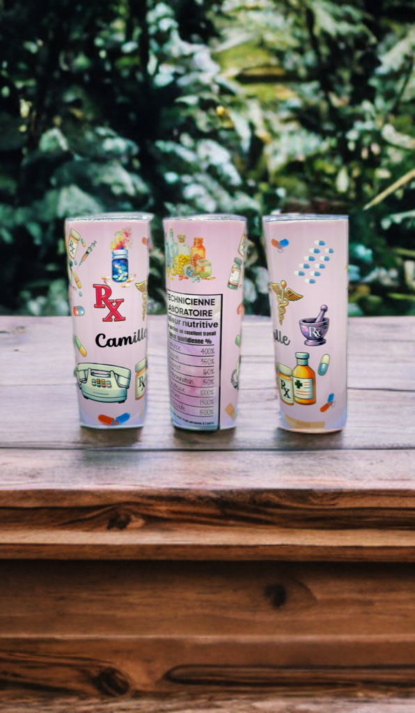 Gobelet droit à fond plat en acier inoxydable 20oz ou gourde thermos à personnalisé technicienne laboratoire