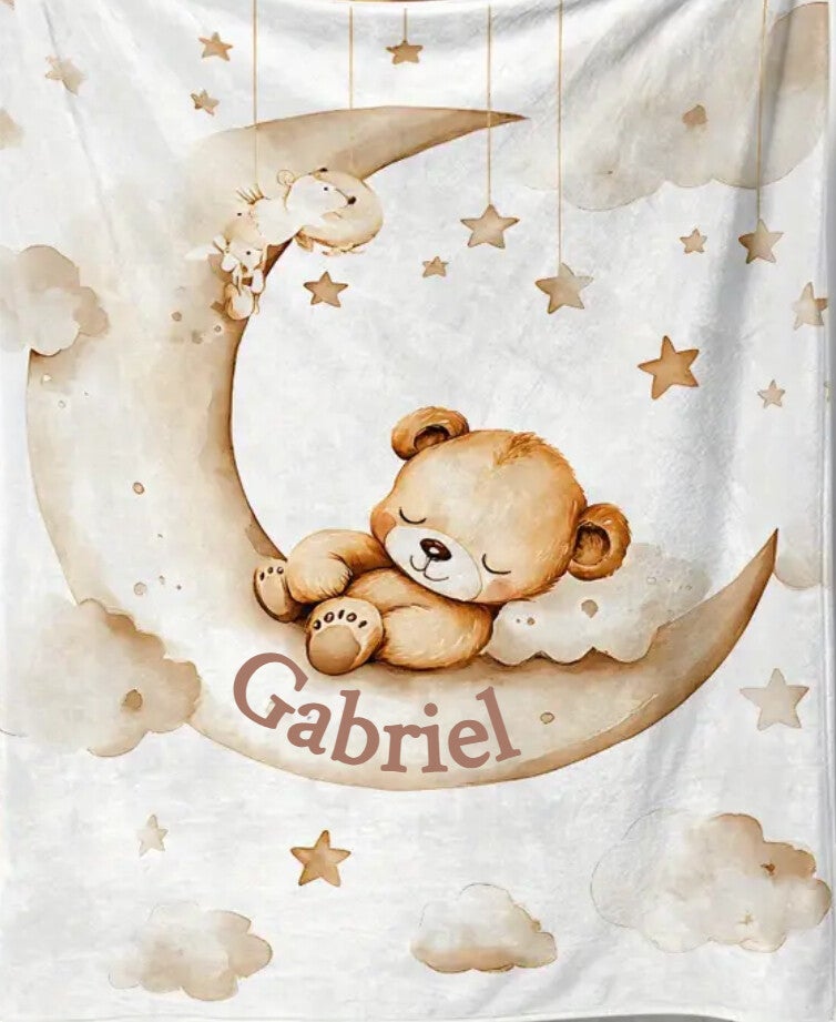 Ours Lune & Étoiles Imprimé Polaire Couverture, Léger Flanelle personnalisable