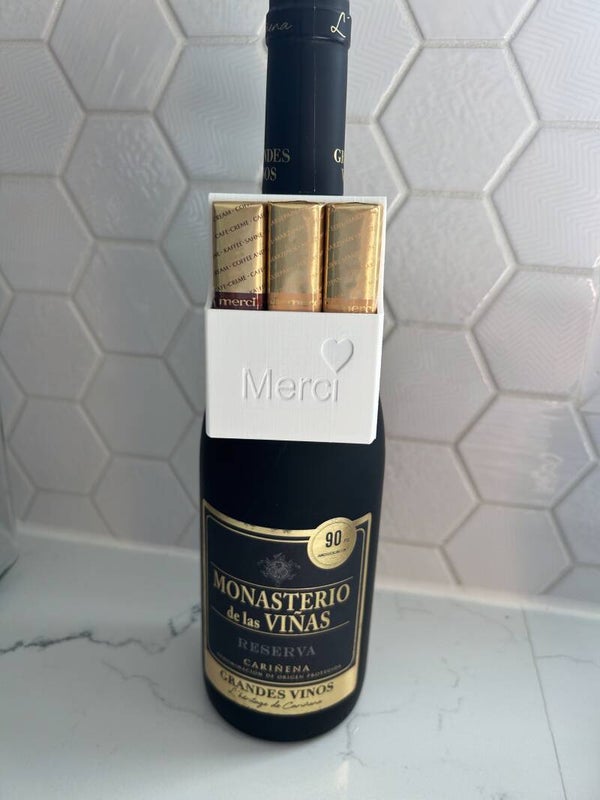 Ce porte-chocolats s’accroche facilement autour du goulot de n’importe quelle bouteille de vin et peut contenir 3 chocolats (non inclus). Une idée parfaite pour offrir un cadeau raffiné, pratique et personnalisé.