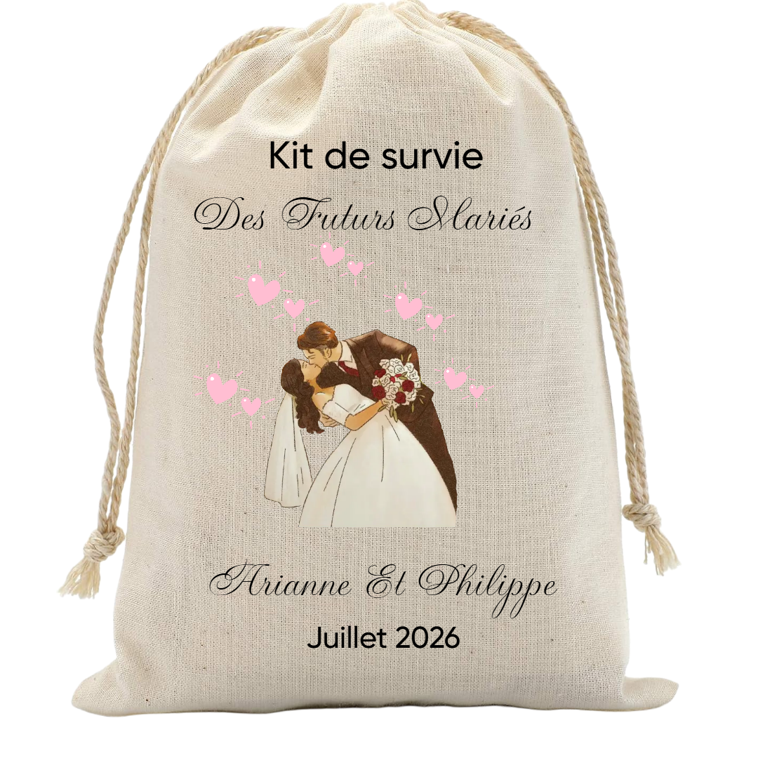 Chaque sac est personnalisé selon votre événement : prénom, date, destination ou occasion spéciale (mariage, Mexique, 18e anniversaire, etc.). Un souvenir à la fois utile, drôle et mémorable qui fera sourire tous les invités.